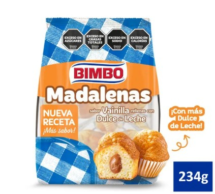 Disfruta de unas deliciosas madalenas rellenas con dulce de leche de la reconocida marca Bimbo. Con un peso de 190 gr, son perfectas para satisfacer tus antojos en cualquier momento del día. Encuéntralas en la sección de alimentos de tu supermercado favor